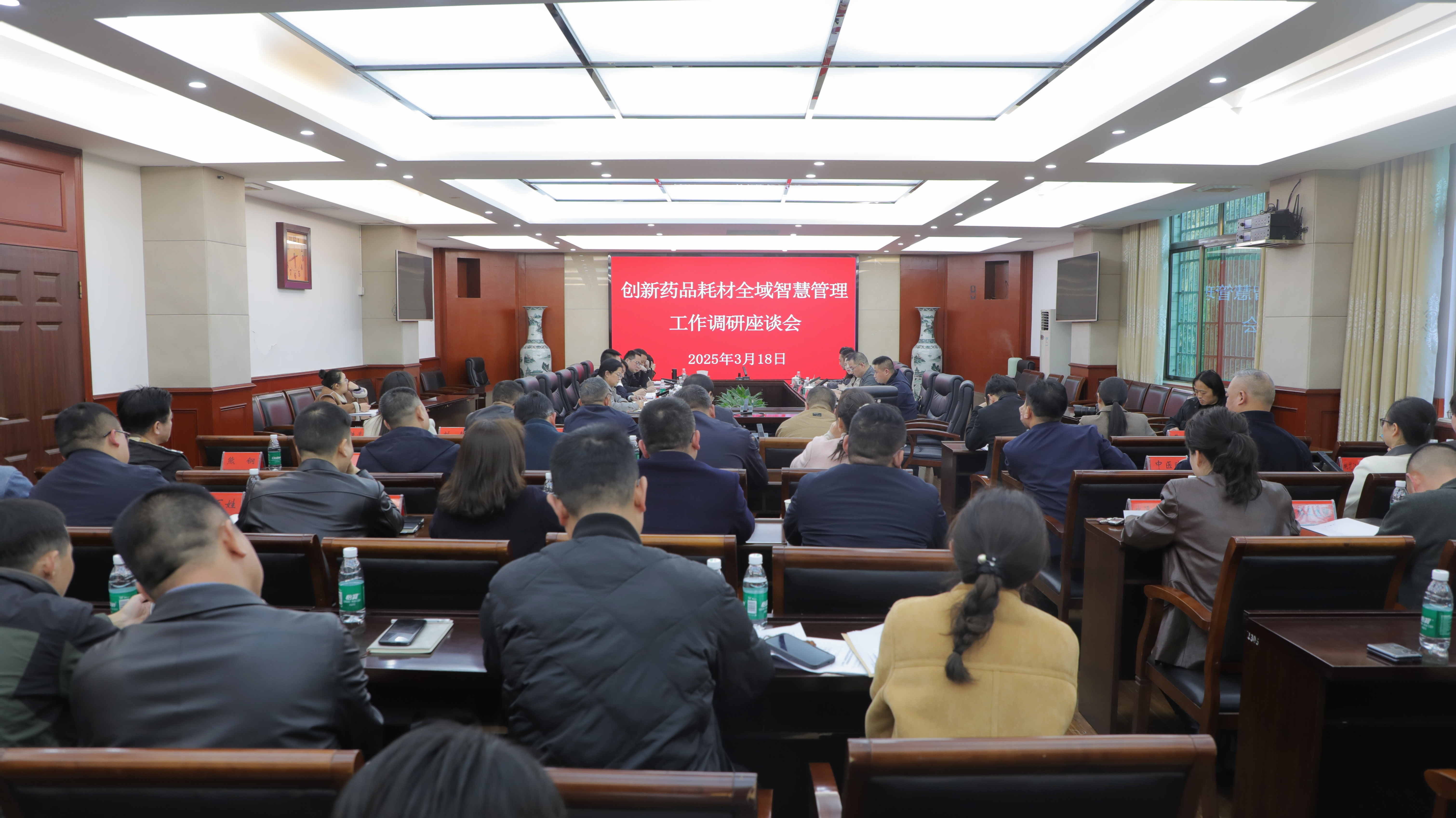 3月18日下午,省51视频 党组成员、副局长邓洁云带队赴益阳市桃江县专题调研药品耗材全域智慧管理(H-SPD)工作,益阳市政府相关负责同志、桃江县政府主要负责同志和省51视频 规划财务和法规处主要负责同志参加调研。